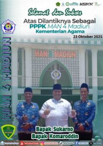 Usai pelantikan mereka menyatakan rasa syukurnya kepada Allah SWT. “Alhamdulillah, selama kami di madrasah (MAN 4 Madiun) bersama seluruh tenaga pendidik dan kependidikan di madrasah ini mengabdi bekerja sama untuk MAN 4 Madiun, semoga dengan pelantikan sebagai ASN ini semua semakin barokah dan manfaat, mohon doanya Bapak Ibu semua”, urai Mas Kom sapaan akrabnya.(nur)